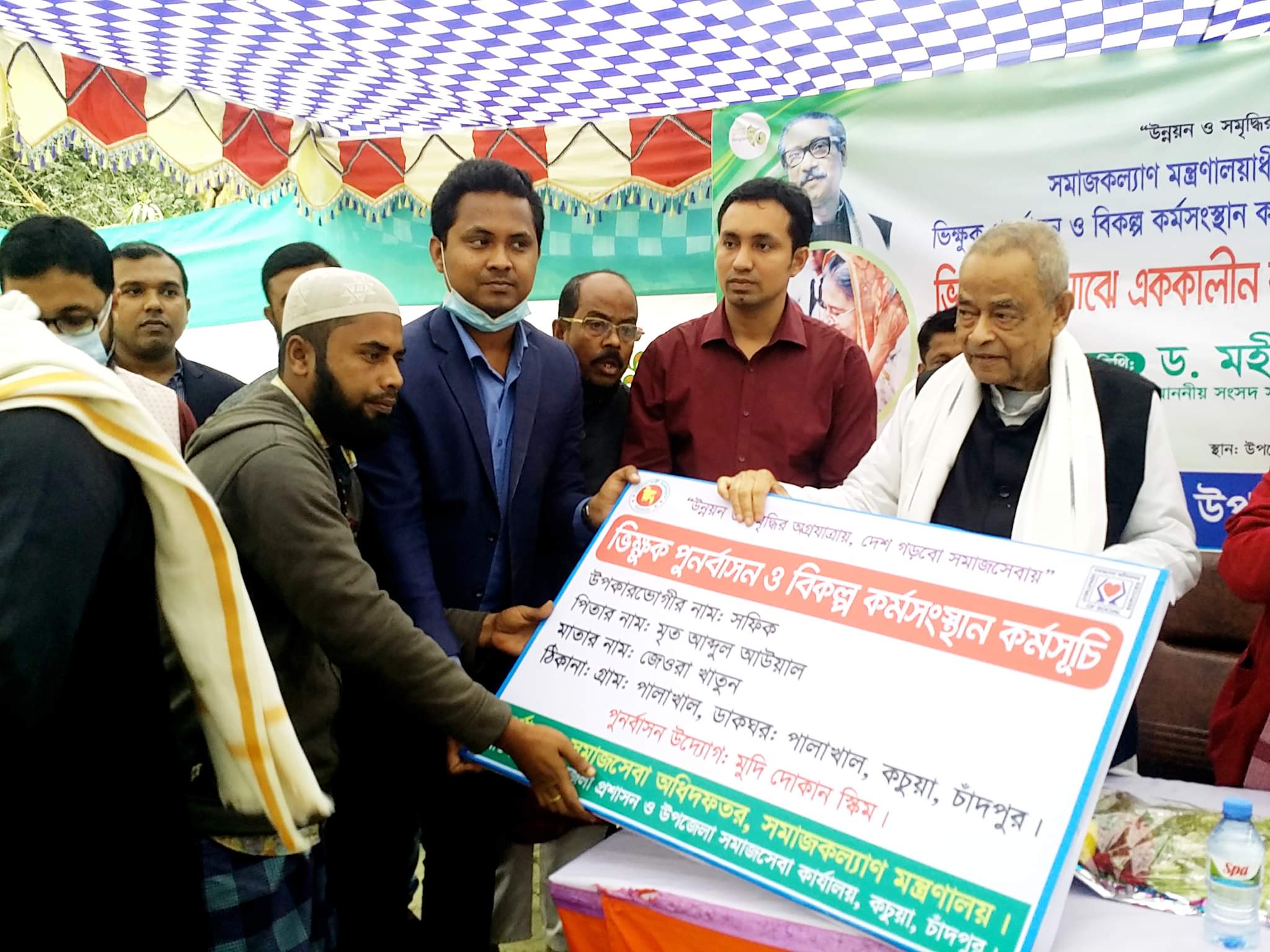 বুধবার (১লা ফেব্রুয়ারী) বিকালে কচুয়া উপজেলা পরিষদ প্রাঙ্গণে উপজেলা সমাজসেবা কার্যালয়ের আয়োজনে ১১ জন ভিক্ষুককে গরু, ব্যাটারি চালিত মিশুক, এবং সংসারের অভাব অনটন নিরসনে বাণিজ্যিকভাবে বিক্রয় করার জন্য বিভিন্ন রকমের মুদি মালামাল প্রদান করা হয়। উপকরণ ও চেক বিতরণ অনুষ্ঠানে প্রধান অতিথির বক্তব্য রাখেন, সাবেক স্বরাষ্ট্রমন্ত্রী ও চাঁদপুর-১ (কচুয়া) আসনের সাংসদ ড. মহীউদ্দীন খান আলমগীর,এমপি। তিনি তাঁর বক্তব্যে বলেন, ভিক্ষার মতো নিচু শ্রেণির পেশা থেকে পিছিয়ে পড়া মানুষদের পুর্নবাসন করার লক্ষে প্রধানমন্ত্রী নিজ উদ্যোগে এই প্রকল্প গ্রহণ করেছেন। যারা প্রধানমন্ত্রীর এই উপহার সামগ্রীগুলো যথাযথ ও সঠিক ভাবে ব্যবহারের মাধ্যমে নিজেদেরকে স্বাবলম্বী করে তুলবেন তাদেরকে আরো সহায়তা প্রদান করা হবে আর যারা তা করবে না পরবর্তি সুবিধাগুলো তাদের কাছ থেকে নিয়ে অন্য ভিক্ষুকদের প্রদান করা হবে। শুধু তাই নয় এই কাজে নিয়োজিত মানুষরা সুবিধাভোগী এই ভিক্ষুকদের সকল কিছু নিয়মিত মনিটরিং করবেন এবং পরিবর্তিতে তাদের পজেটিভ প্রতিবেদনের মাধ্যমে তাদেরকে আরো সহযোগিতা প্রদান করা হবে। কারণ মাননীয় প্রধানমন্ত্রী চান না দেশে একজন ভিক্ষুকও ভিক্ষাবৃত্তি পেশায় যুক্ত থাকুক। তাই তিনি এই ধরনের মানবিক পদক্ষেপ গ্রহণ করেছেন।