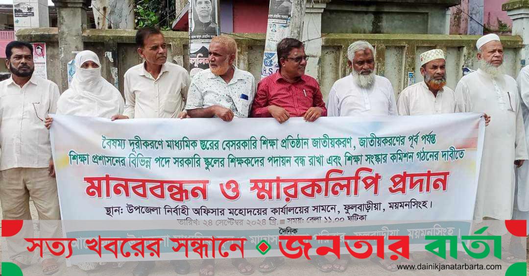 ফুলবাড়িয়ায় মাধ্যমিক শিক্ষা জাতীয়করণ দাবিতে মানববন্ধন-স্বরকলিপি