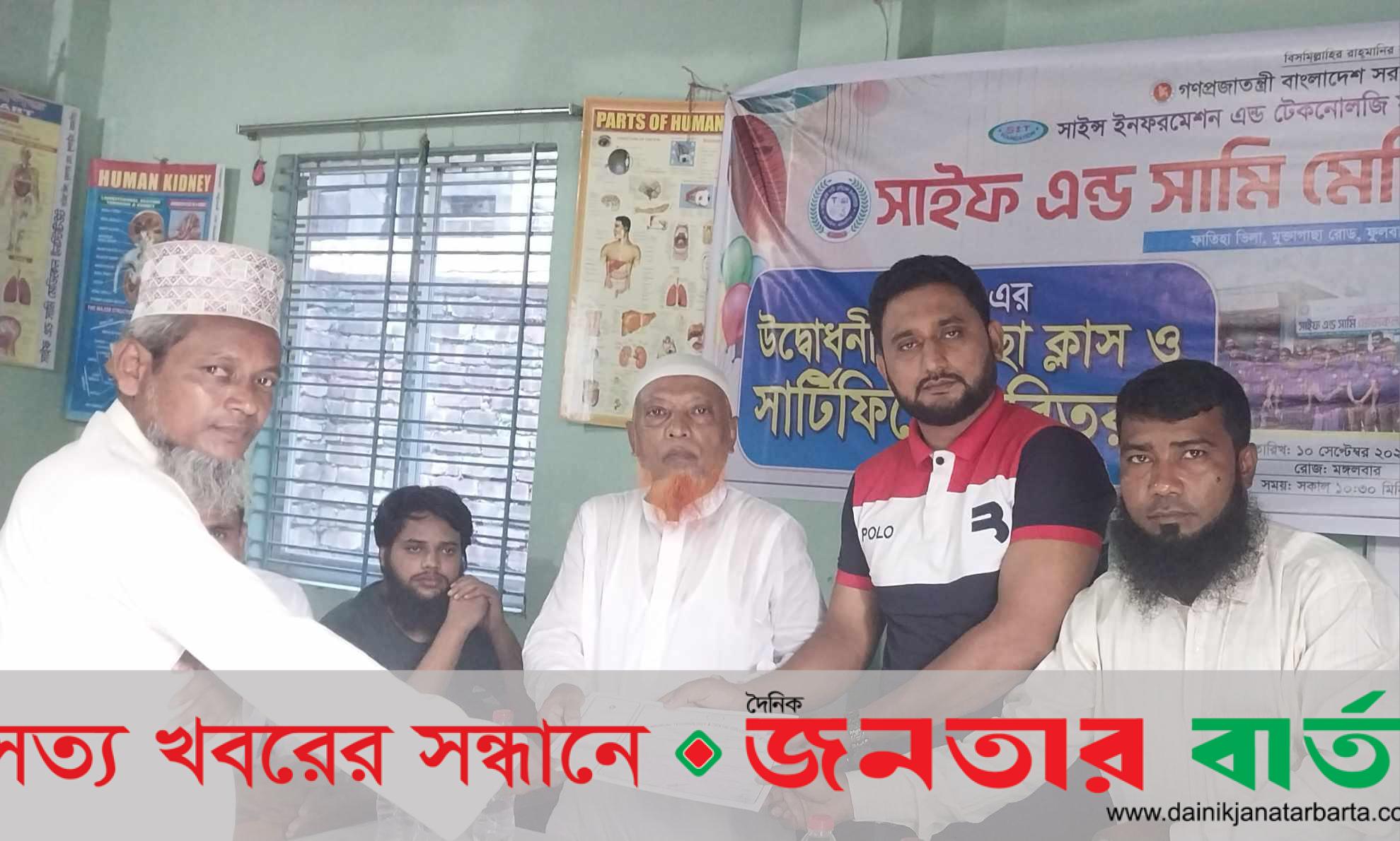 ময়মনসিংহ ফুলবাড়িয়া উপজেলার সাইফ এন্ড সামী মেডিকেল ইনস্টিটিউট এর উদ্বোধনী শুভেচ্ছা ক্লাস ও পুরুষ্কার এবং সার্টিফিকেট বিতরণ অনুষ্ঠান অনুষ্ঠিত হয়েছে। মঙ্গলবার সকাল ১১ টায় ফুলবাড়িয়া হাইস্কুলের উত্তর পাশে সাইফ এন্ড সামী মেডিকেল ইনস্টিটিউট এর কার্যালয়ে অনুষ্ঠিত হয়। উক্ত অনুষ্ঠানে সভাপতিত্ব করেন মোঃ সাইফুল ইসলাম পরিচালক সাইফ এন্ড সামী মেডিকেল ইনস্টিটিউট। প্রধান অতিথি হিসেবে উপস্থিত ছিলেন ডাঃএ.কে.এম সিদ্দিকুর রহমান সাবেক, ইউ.এইচ.এন্ড এফ.পি. ও.ফুলবাড়িয়া উপজেলা স্বাস্থ্য কমপ্লেক্স। বিশেষ অতিথি হিসেবে উপস্থিত ছিলেন ডাঃ হাফিজুর রহমান উপ- সহকারী কমিউনিটি মেডিকেল অফিসার, ফুলবাড়িয়া উপজেলা স্বাস্থ্য কমপ্লেক্স।