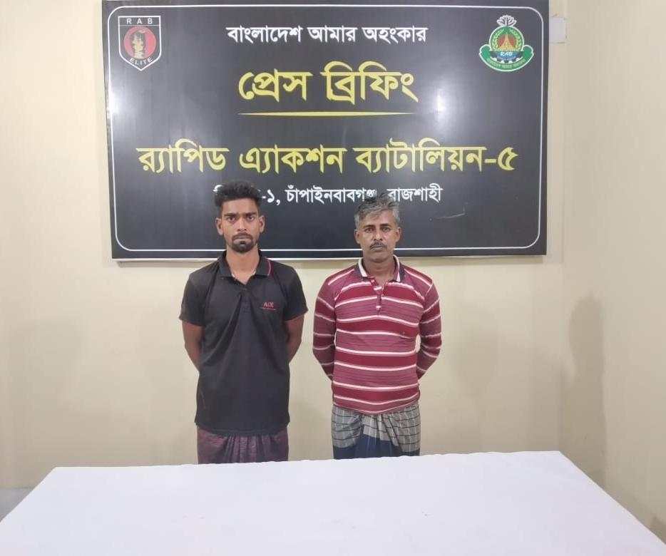 চাঁপাইনবাবগঞ্জে র্যাব-৫ এর অভিযানে দেশী মদ সহ ২ জন মাদক ব্যবসায়ী গ্রেফতার