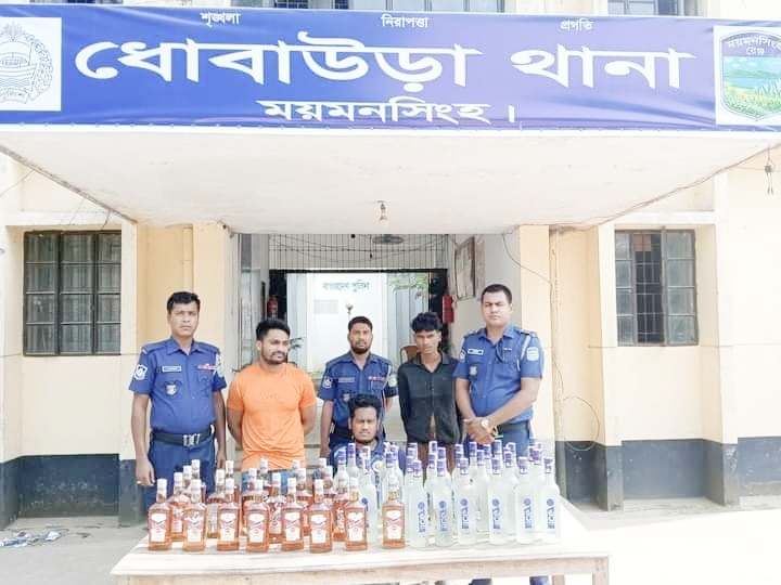 ময়মনসিংহের ধোবাউড়ায় পুলিশের পৃথক দুটি অভিযানে ৯৪ বোতল ভারতীয় নিষিদ্ধ মদসহ আটক-৩জন