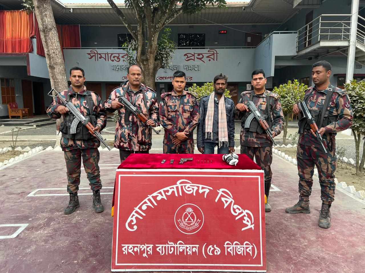 শিবগঞ্জে ৫৯বিজিবির হাতে বিদেশি পিস্তল সহ একজন গ্রেফতার