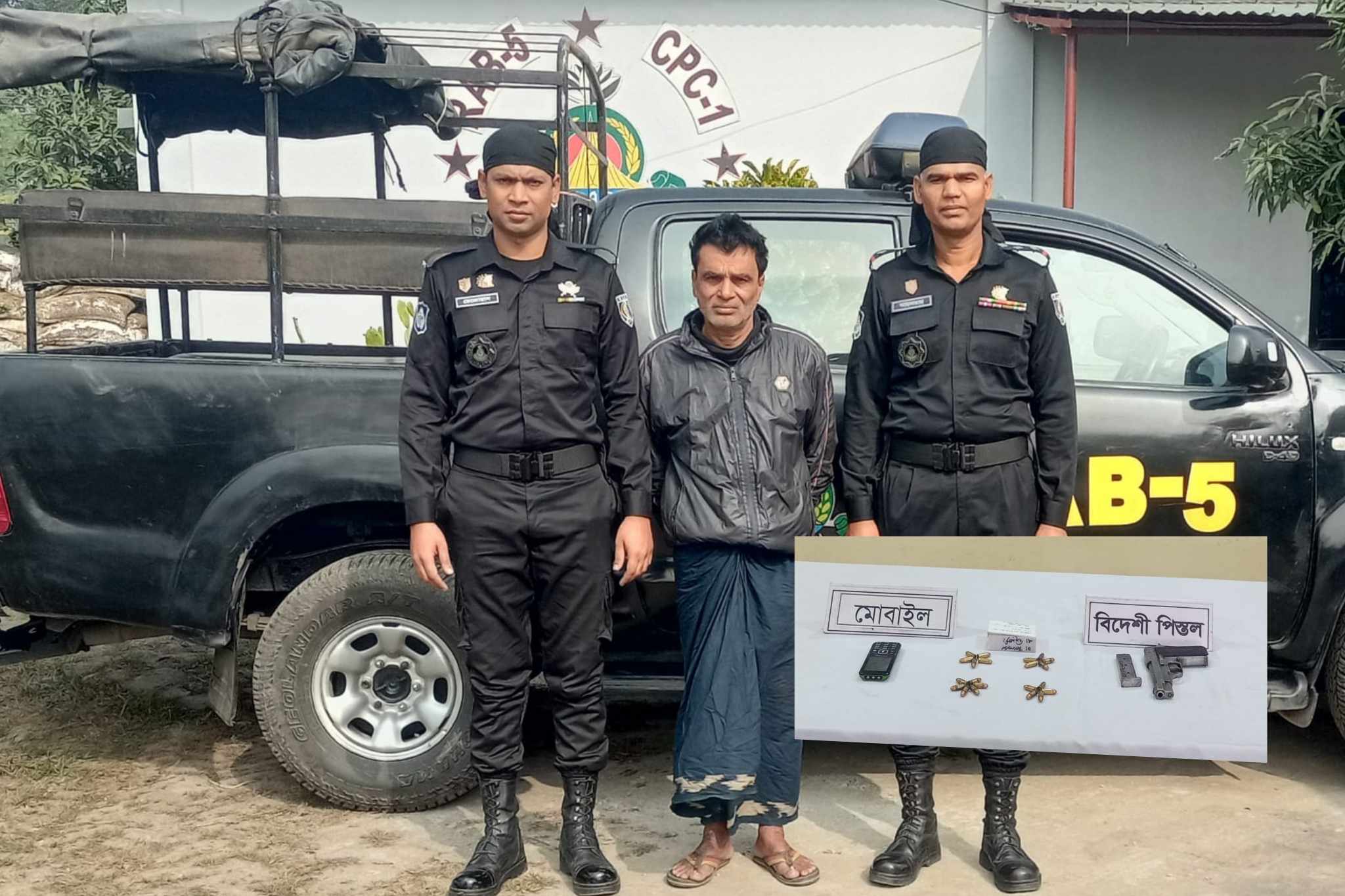 চাঁপাইনবাবগঞ্জে বিদেশি পিস্তল সহ চিহ্নিত অস্ত্র ব্যবসায়ী র‌্যাবের হাতে গ্রেফতার