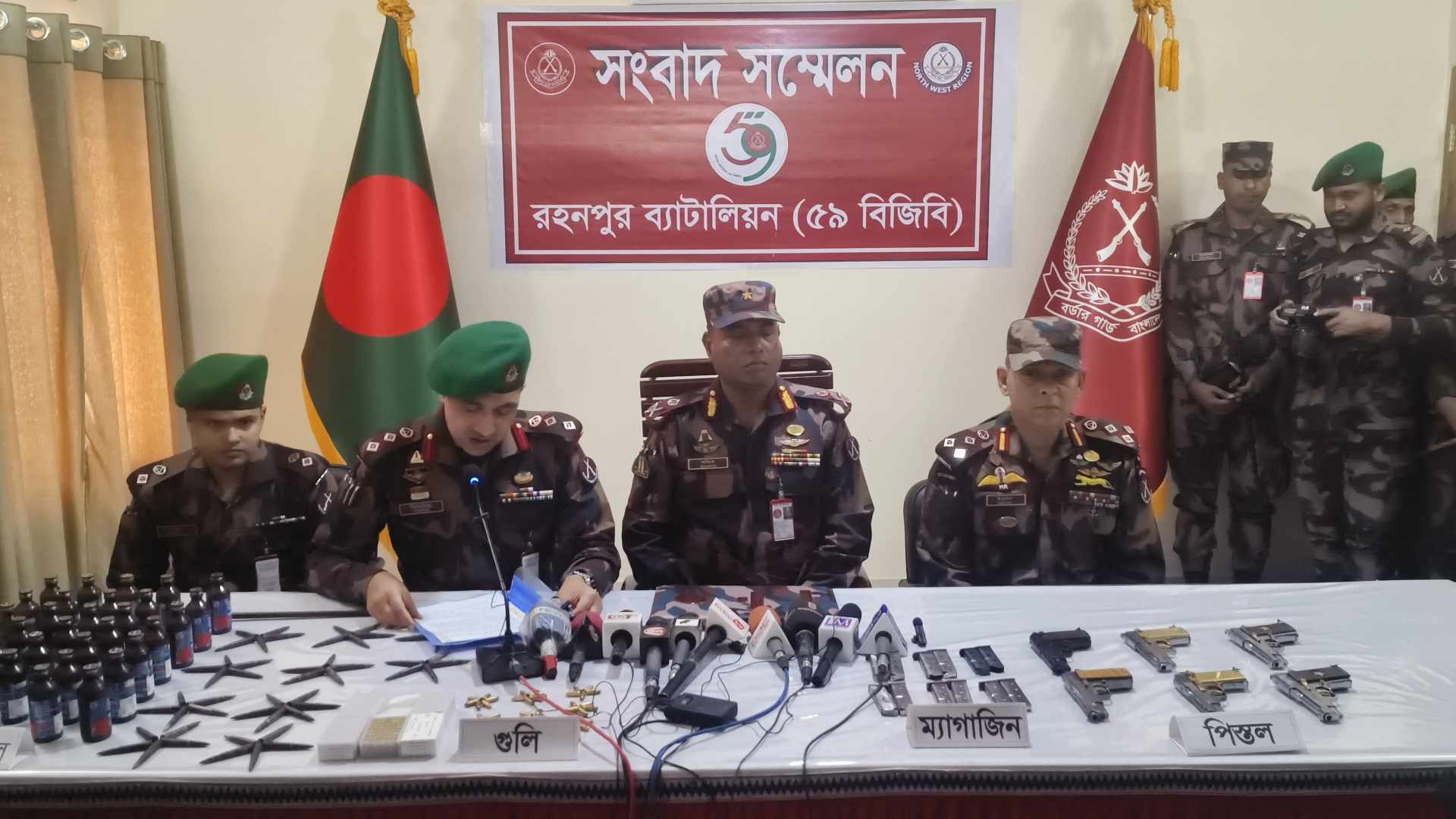চাঁপাইনবাবগঞ্জে ৭টি বিদেশি পিস্তল, বিপুল পরিমাণ গুলি, ১৩ ম্যাগজিন উদ্ধার