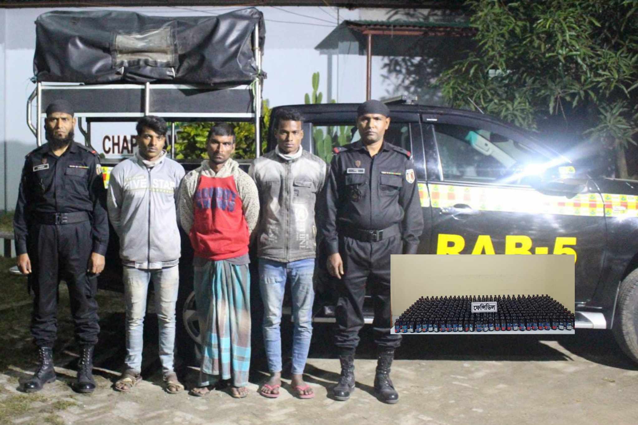 শিবগঞ্জে র‌্যাব-৫,এর অভিযানে ফেন্সিডিল সহ ৩ জন মাদক ব্যবসায়ী গ্রেফতার