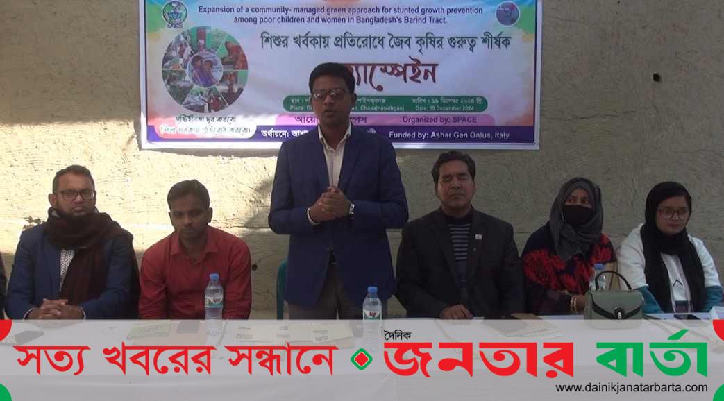 ইমাম হাসান জুয়েল, চাঁপাইনবাবগঞ্জ: “পুষ্টিহীনতা দূর করব, শিশু খর্বকায় প্রতিরোধ করব” এই স্লোগানে চাঁপাইনবাবগঞ্জে শিশুর খর্বকায় প্রতিরোধে জৈব কৃষির গুরুত্ব