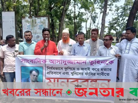 সাংবাদিক আসাদুজ্জামান তুহিন হত্যার বিচার দাবিতে ধোবাউড়ায় কর্মরত সাংবাদিকদের মানববন্ধন