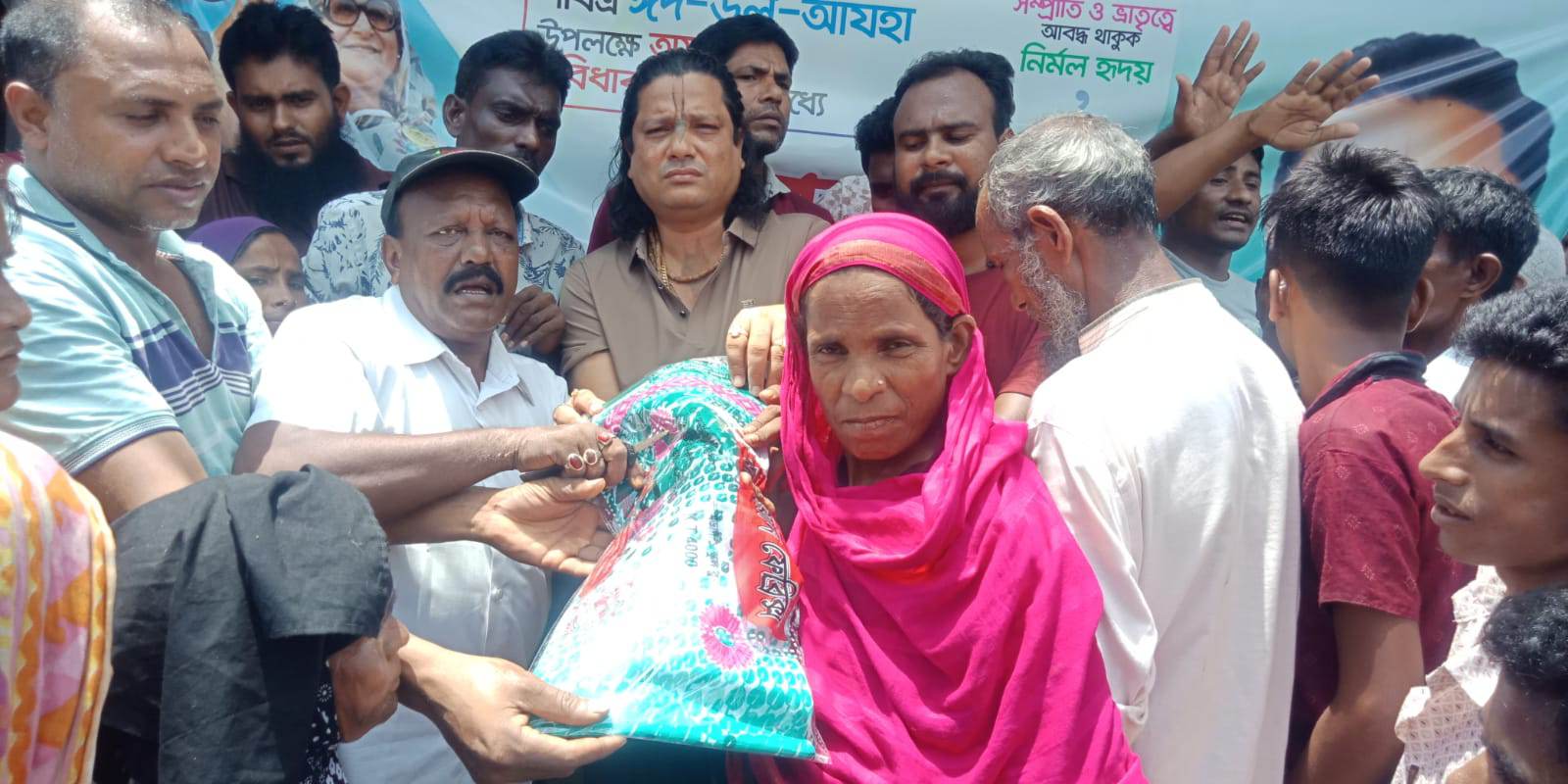 বাউড়ায় রূপন চন্দ্র আইন সাধুর ব্যক্তিগত উদ্যােগে গরীব অসহায় দুঃস্থদের মাঝে শাড়ী লুঙ্গি বিতরণ