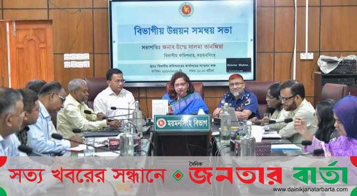 গোলাম কিবরিয়া পলাশ, ময়মনসিংহ: ময়মনসিংহ বিভাগীয় কমিশনার উম্মে সালমা তানজিয়ার সভাপতিত্বে ময়মনসিংহে বিভাগীয় উন্নয়ন সমন্বয় সভা অনুষ্ঠিত হয়েছে। সোমবার (২১