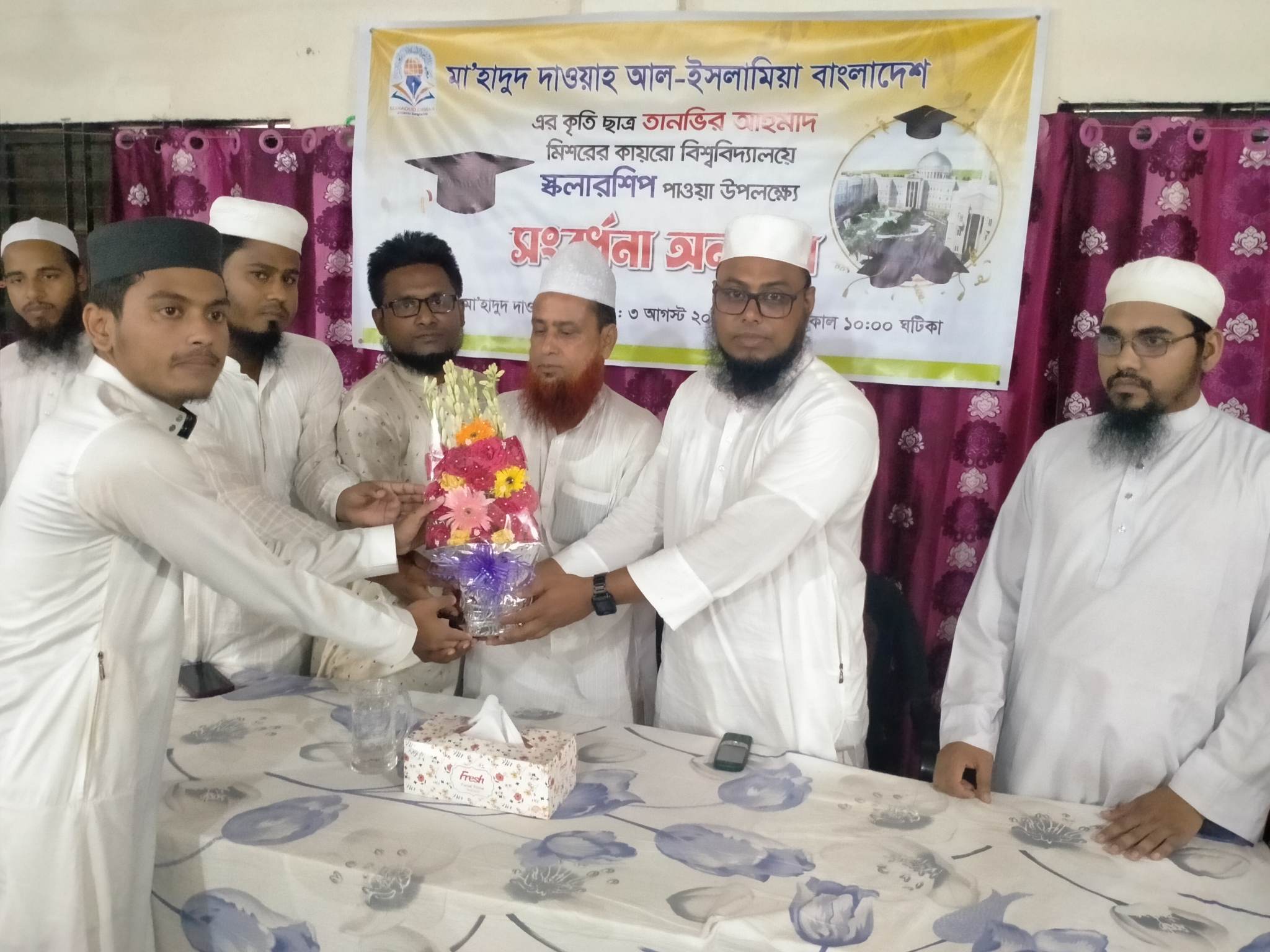 গোলাম কিবরিয়া পলাশ, ময়মনসিংহঃ মাহাদুদ দাওয়াহ আল-ইসলামিয়া বাংলাদেশ এর কৃতি ছাত্র তানভীর আহমাদ মিশরের কায়রো বিশ্ববিদ্যালয়ে স্কলারশিপ পাওয়া উপলক্ষ্যে সংবর্ধনা